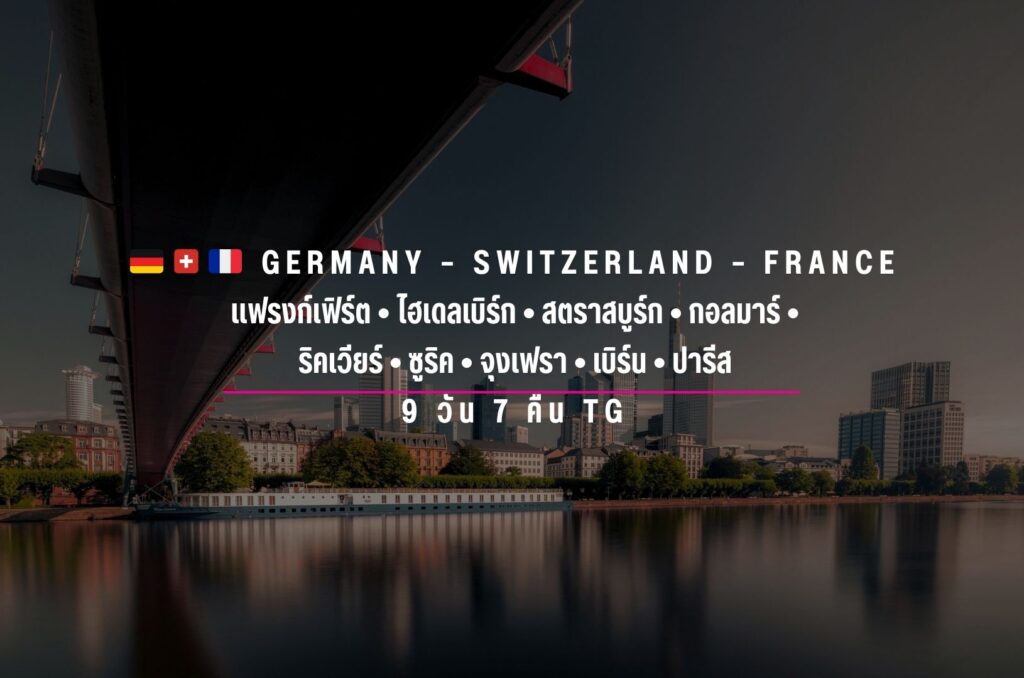 แฟรงก์เฟิร์ต • ไฮเดลเบิร์ก • สตราสบูร์ก • กอลมาร์ • ริคเวียร์ • ซูริค • จุงเฟรา • เบิร์น • ปารีส นั่งรถไฟความเร็วสูง TGV ดีฌง–ปารีส