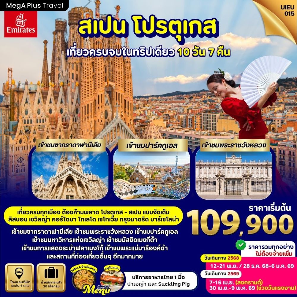 ทริปนี้คือ “ของดีที่ต้องไปให้ได้สักครั้งในชีวิต”! รวมแลนด์มาร์กระดับโลกทั้งโปรตุเกส–สเปน เที่ยวครบแบบไม่ต้องวนรอบ เข้าแบบจัดเต็มทุกไฮไลท์ ทั้งโบสถ์ซากราดาฟามีเลีย พระราชวังหลวง ปาร์คกูเอล และเส้นทางเมืองเก่าที่สวยจนลืมหายใจ ใครอยากเที่ยวคุ้มแบบยุโรปใต้—ทริปนี้ตอบโจทย์ที่สุด!