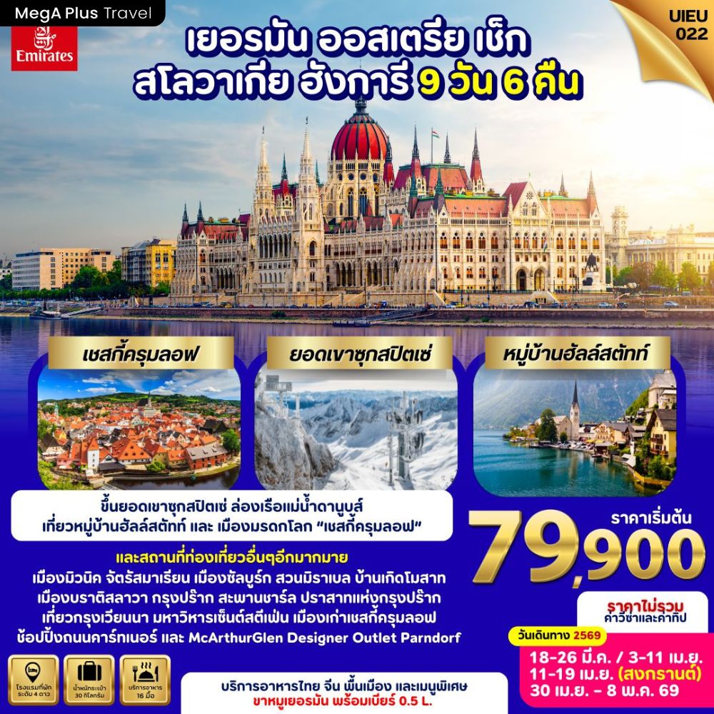 ทริปยุโรปตะวันออกสุดครบที่คัดทุกเมืองสวยไว้ในเส้นทางเดียว เก็บแลนด์มาร์กสำคัญทั่ว 5 ประเทศ ทั้งหมู่บ้านริมทะเลสาบสุดโรแมนติก เมืองหลวงคลาสสิก และยอดเขาสุดอลังการ เที่ยวสบาย ได้รูปสวยทุกวัน อากาศดี บรรยากาศปัง และคุ้มค่าตั้งแต่วันแรกจนวันกลับ
